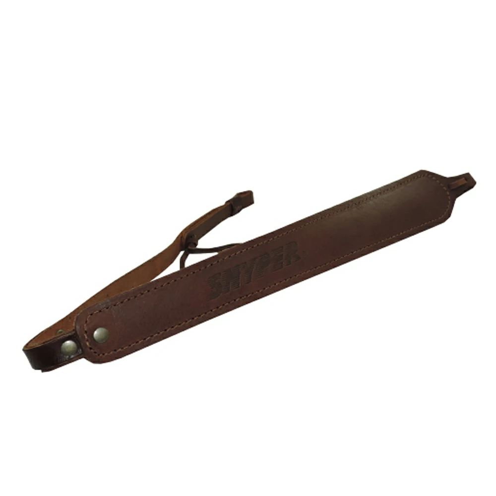 Confeccionada em couro e largura de 25 mm. Possui descanso para o ombro, para facilitar o deslizamento da bandoleira na hora de manejar a arma. Ponteiras em couro nas extremidades para prender na arma. Compatível com qualquer arma que tenha zarelhos na coronha e handguard.