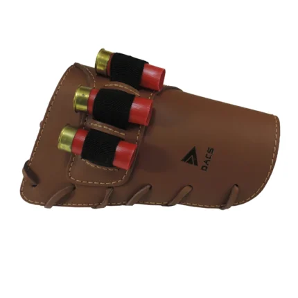 Confeccionada em couro bovino Costuras reforçadas Capacidade 03 cartuchos